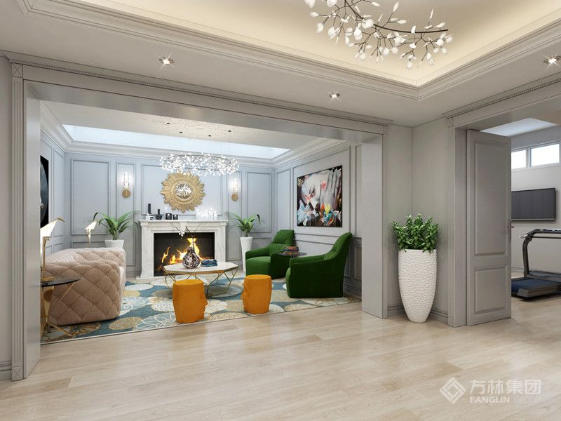 本案定位于现代法式风格,整体空间氛围欢快明亮,大气舒适。多彩元素的运用,给空间注入了更多的活力,体现主人时尚的生活态度。
