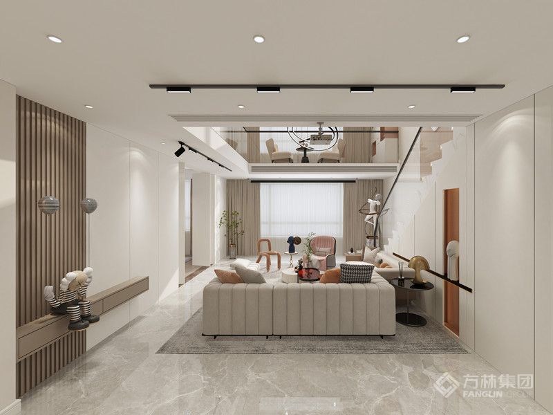 本案风格为现代简约,属于改善房,一家4口居住。主要满足收纳功能的需求。厨房和客厅采光通风要求比较高。客厅内沙发墙与楼梯浑然结合,能保留足够大的活动空间,将楼梯美化于整个氛围当中。