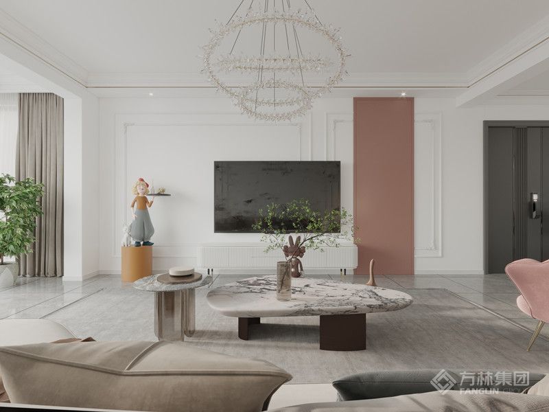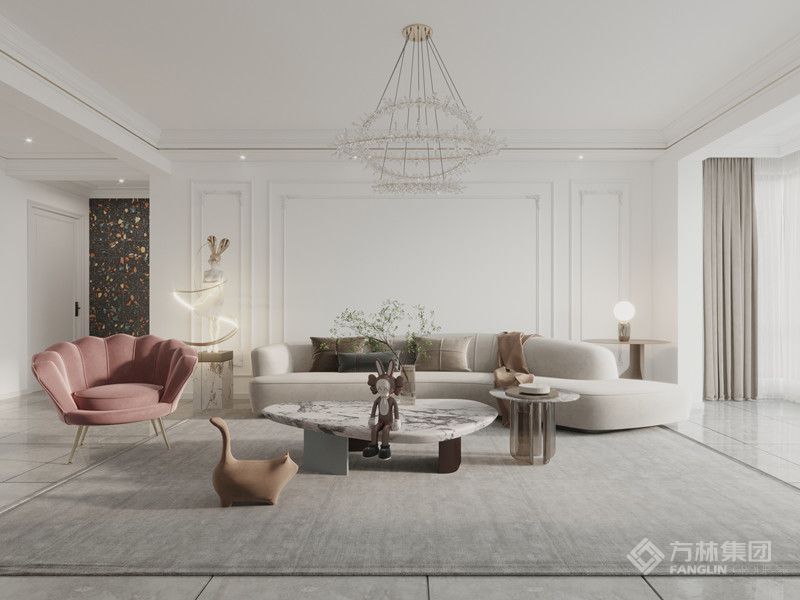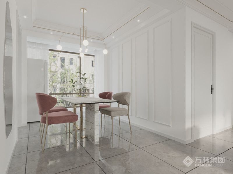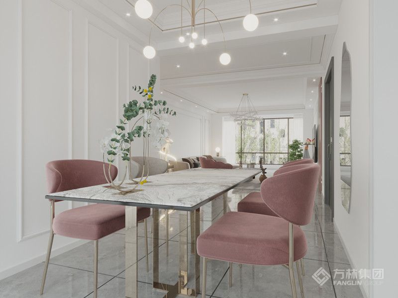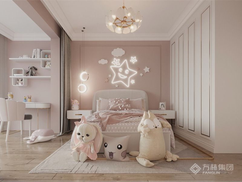 "白色为主色调,用粉色家具做点缀,给人一种温馨舒适的感觉,在冬天里粉色是给人很春意盎然的色系。