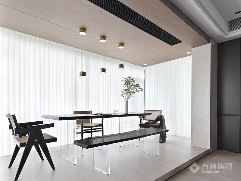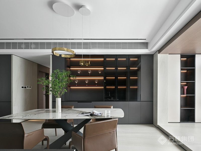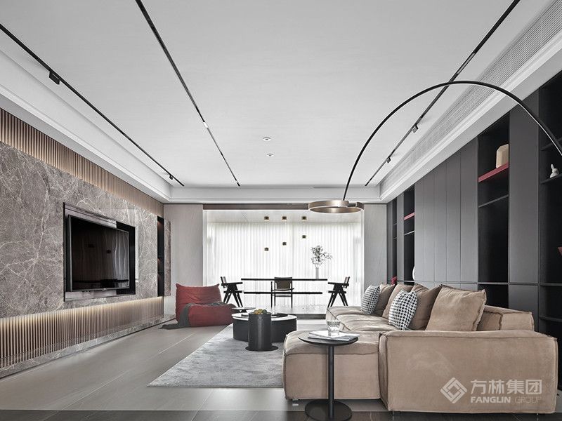 客厅布局打破常规的空间界限,用线条强调空间与空间的联系、区域的划分,以连贯的手法呈现,开放式的格局,让空间更为宽敞。去除多余的东西,复杂的线条,以最简单的方式呈现