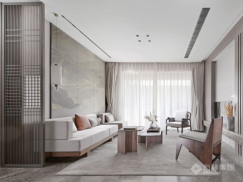 将中式元素与现代材质巧妙兼柔,铸就现代的东方之美 ,营造出如水墨画般朦胧的诗意美。隔绝一切喧嚣杂念,回归最真实的恬淡心境。