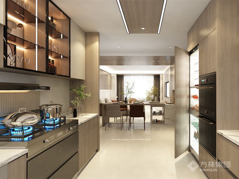 这套平层的原户型切割琐碎,独立房间过多,厨房区域狭小,导致居住功能性较弱,未能满足业主需求。因此设计师将其中两个房间合并为儿子卧室套房,同时扩大主卧套房与厨房面积,合理优化布局动线。整体空间去除了繁杂的元素,设计师用冷静克制的设计语言,诠释着这个家内敛理性而不失优雅的独特气质